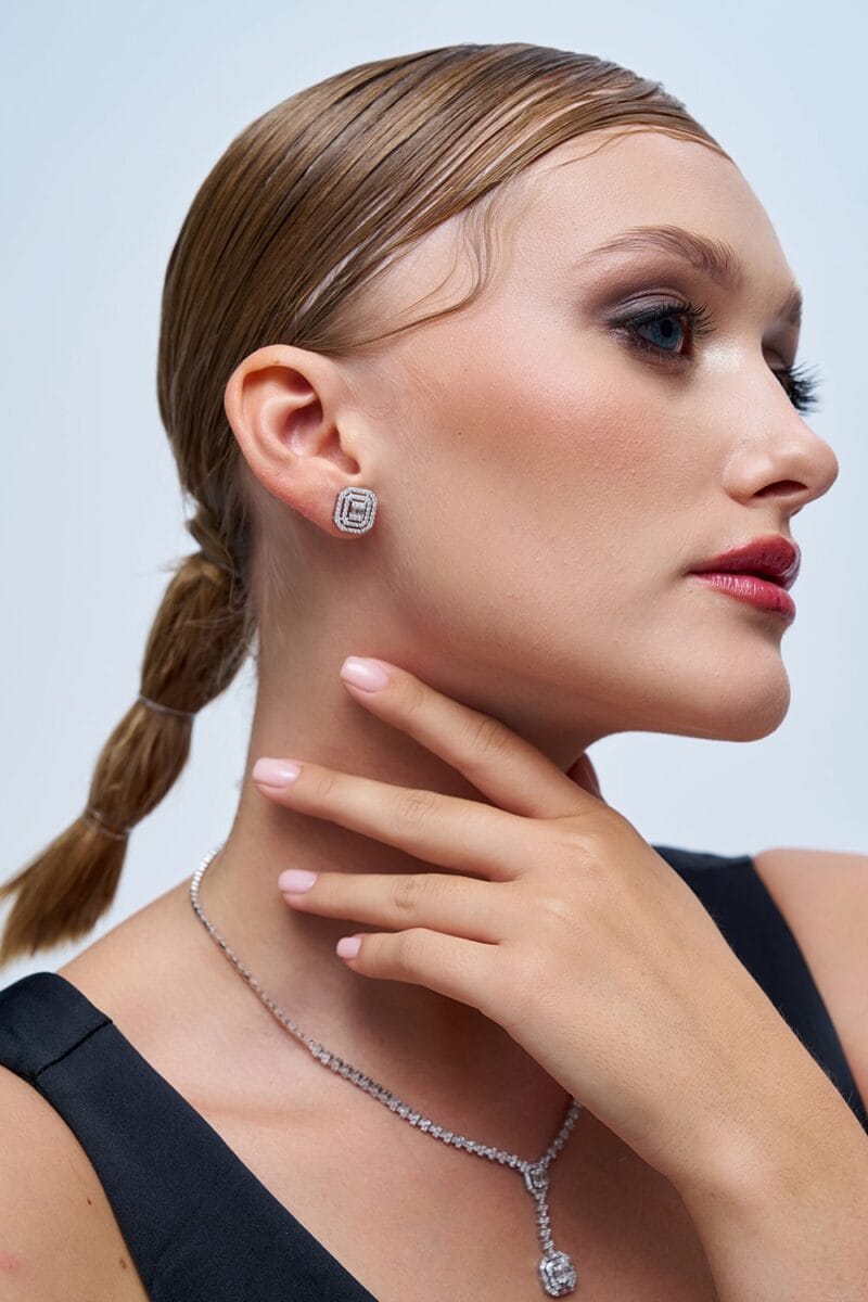 0.61 Karat Tasarım Pırlanta Baget Küpe